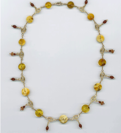 Butterscotch Amber and Carnerlian with 14KY gold filled wire links.