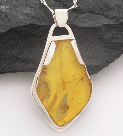 Sterling silver and Amber pendant, with a window from the back to enjoy the insect inclusion.