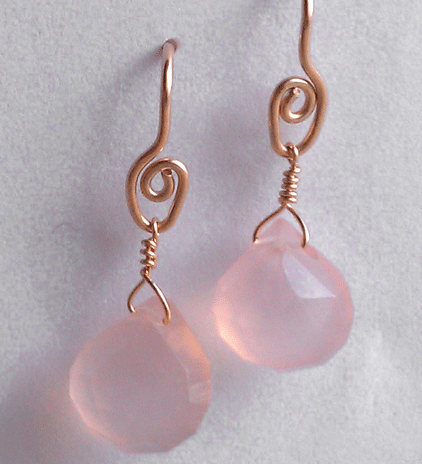 Pink Chalcedony briolettes with 14K rose gold handmade ear wires.