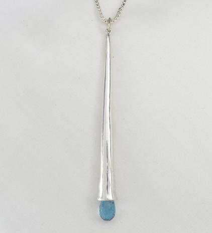 Hand carved long dangling drop set with blue Topaz.