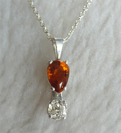Intense natural colored Topaz with an antique diamond set in white gold.