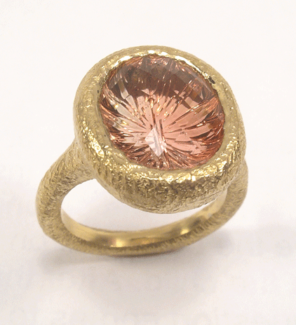 A highly textured 22K gold ring featuring a large Nigierian Tourmaline.